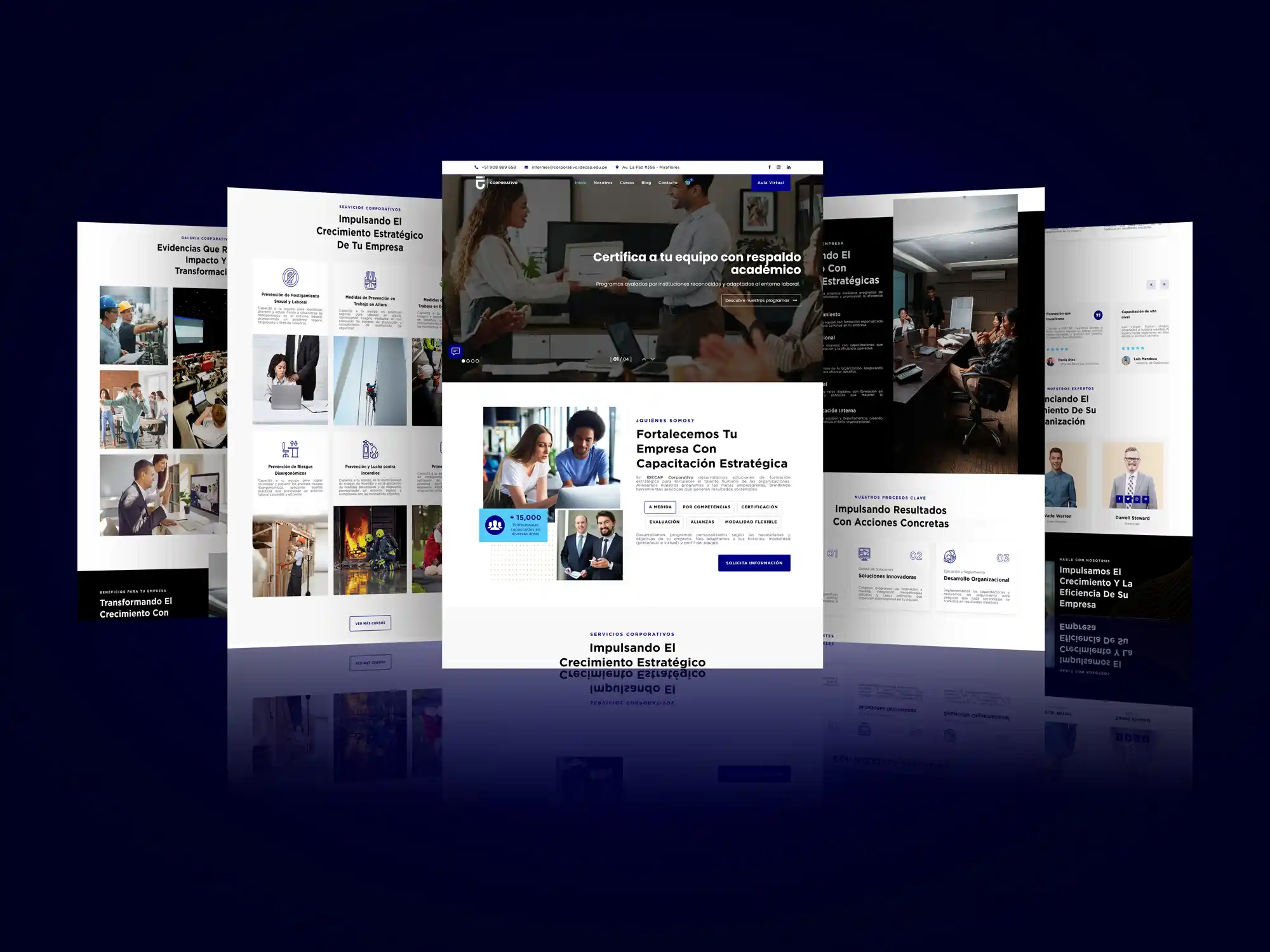 Cada sección del sitio fue diseñada para presentar de forma clara y estructurada los servicios, programas y soluciones de formación empresarial de IDECAP Corporativo, guiando al visitante hacia la información más relevante según sus objetivos. Desde capacitaciones especializadas y programas a medida, hasta consultorías y alianzas estratégicas, la navegación resalta cada área con claridad y dinamismo. Todo el diseño se enfoca en transmitir confianza, facilitar la exploración de servicios y fortalecer la conexión entre IDECAP Corporativo y las organizaciones que apuestan por el desarrollo de su talento.